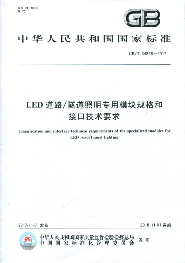 《G幸福宝app破解版下载道路/ 隧道照明专用模块规格和接口技术要求》标准号GB/T 34846-2017: